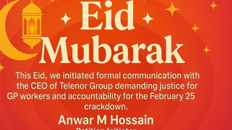 Neuigkeit zur PetitionJustice for Grameenphone Workers: Stop the Crackdown, Pay Our Rightful Dues!ঈদে চিঠি গেছে টেলিনর CEO-র কাছে—এটাই আমাদের ঈদ উপহার