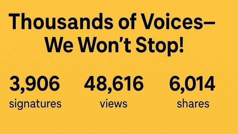 আর মাত্র ১,০৯৪ জন সাইন করলেই আমরা পৌঁছাবো পরবর্তী লক্ষ্যে—যেটা শুধু সংখ্যার জন্য না, এটা হবে আরেকটা বড় বার্তা: আমরা একসাথে।