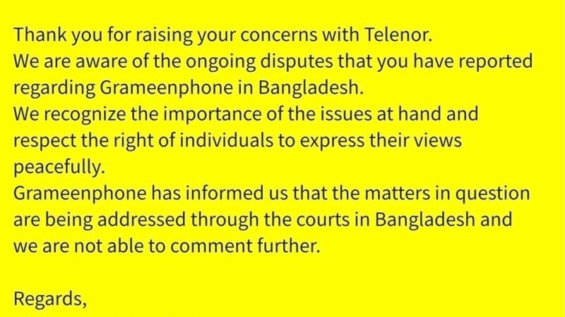 সম্প্রতি টেলিনর আমাদের রিপোর্টের জবাবে যা বলেছে, তা আরও একবার চোখে আঙুল দিয়ে দেখিয়ে দিল — আজকের বিশ্বে আদালত ধনী কোম্পানিগুলোর আশ্রয়স্থল হয়ে উঠেছে।