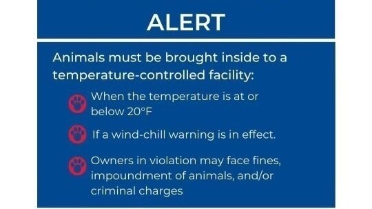 "It could be as simple as this announcement to bring your animals in to some type of indoor shelter if the temperature is at or below 20 degrees.