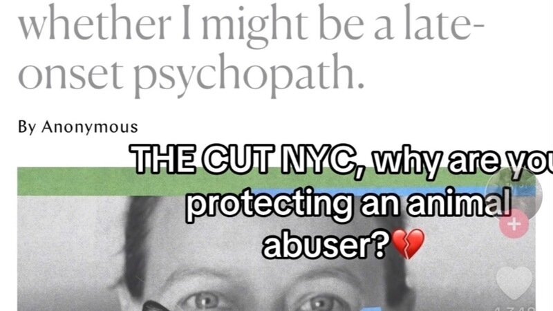 Im calling for CPS involvement and procecution against the woman who wrote and The Cut allowing this article to be published. She put her name down as anon to avoid responsibility for her abuse and neglect knowing what the public response would be.