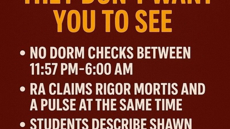 12:09 & 12:20 AM: RA dorm checks happen. After 12:20, no one checks the dorm again until 6:00 AM—almost six hours with no supervision.