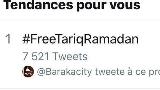 Petition updateJustice for Tariq Ramadan/Justice pour Tariq Ramadan1E TENDANCE SUIVIE SUR TWITTER EN FRANCE! TRENDING IN FRANCE AT NUMBER #1 ON TWITTER