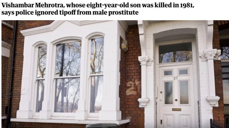 Vishambar Mehrotra, a retired magistrate whose eight-year-old son Vishal was killed in 1981, said he was contacted by a male prostitute at the time who said the boy may have been abducted and murdered by “highly placed” paedophiles linked to a now notorious guesthouse.