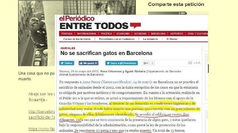 Al leer esta carta del Departament de Benestar Animal de Barcelona (OPAB), cuesta creer que ‘la fallecida’ era Swaantje Schnarre, Presidenta de la asociación Gats Urbans que colaboraba estrechamente con la OPAB durante años para castrar las colonias de Montjüic.