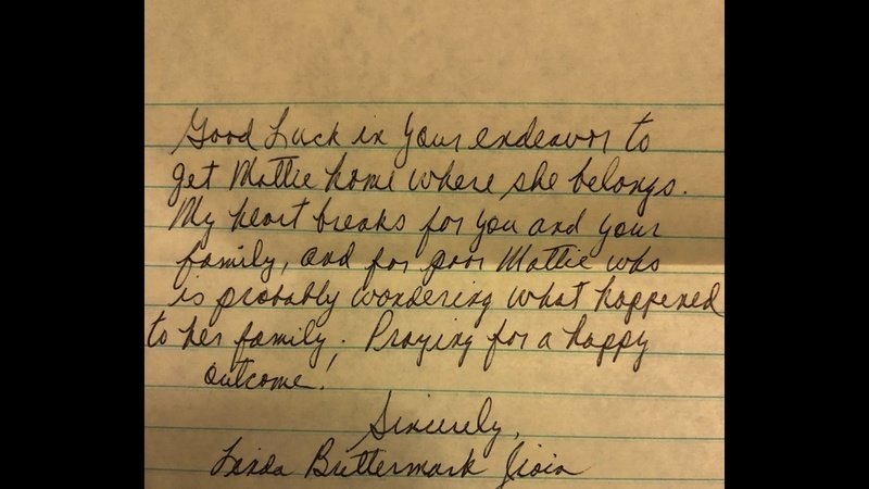”Good Luck in your endeavor to get Mattie home where she belongs. My heart breaks for you and your family, and for poor Mattie who is probably wondering what happened to her family. Praying for a happy outcome!