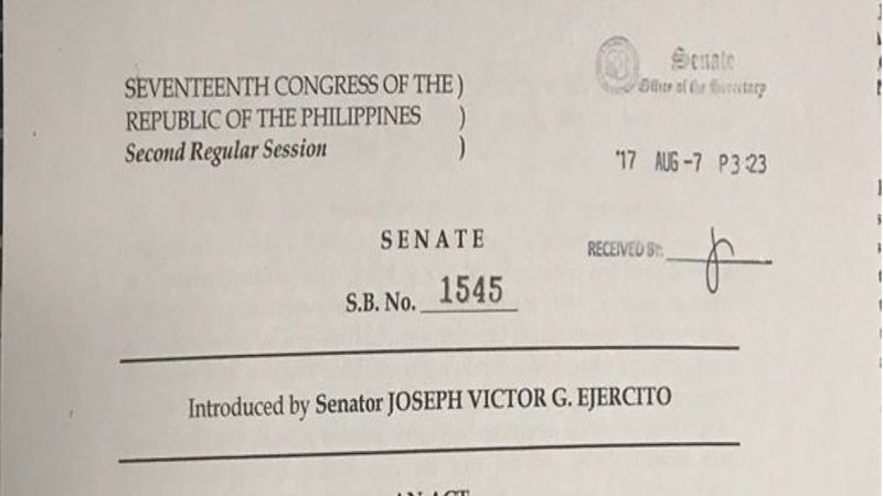 Just a day apart, Sen. Joseph Victor "JV" Ejercito, Chair of the Senate Committee on Health and Cong. Alfred D. Vargas, representative of the 5th District of Quezon City filed their respective versions in the Senate and in the House of Representatives.