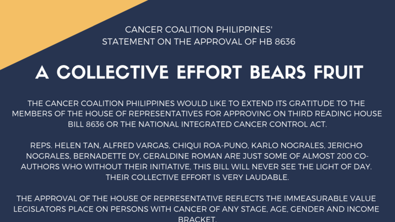 CANCER COALITION PHILIPPINES STATEMENT ON THE APPROVAL OF HB 8636