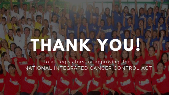 Thus the National Integrated Cancer Control Bill was born and this landmark bill has been approved and ratified by both the Senate of the Philippines and the House of Representatives.