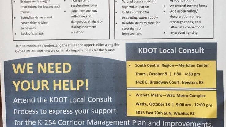 On Friday, September 8th, shortly after 4 p.m., a school bus collided with a Chevrolet Malibu on Kansas Highway 254 near Towanda. Our Circle USD 375 community has lost another young life. I cannot stress enough how dangerous this HWY is for all ages. I'm asking all parents, families & friends to please come express your support for the upcoming K-254 Corridor Managmenet Plan & Improvements.
