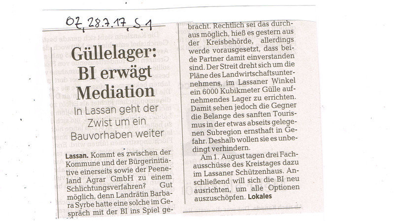Neuigkeit zur PetitionHelfen Sie uns, den schönen "Lassaner Winkel" zu bewahren!Ausschüsse des Kreistags beraten zu Güllegroßlager in Lassan
