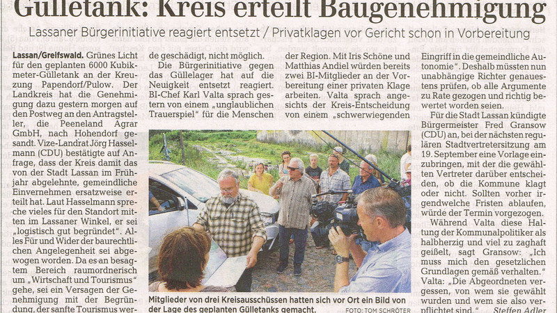 Seit einem Jahr hat sich vor Ort ein Konflikt zwischen touristischer Entwicklung und industrialisierter Landwirtschaft zugespitzt. Landespolitiker begleiten diesen bisher nur schweigend. Das Tourismusland MV und somit der Lassaner Winkel, nehmen Schaden. Dörfliche Revitalisierungsprogramme aus dem Landwirtschaftsministerium oder Geld aus dem Vorpommern-Fonds können keine politischen Antworten auf drängende Fragen zum Umgang mit zwei Ressourcen ersetzen:
