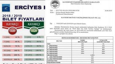 Erciyes Kayak Merkezi'ndeki teleferik biletlerine yapılan zamlar yeniden düzenlensin