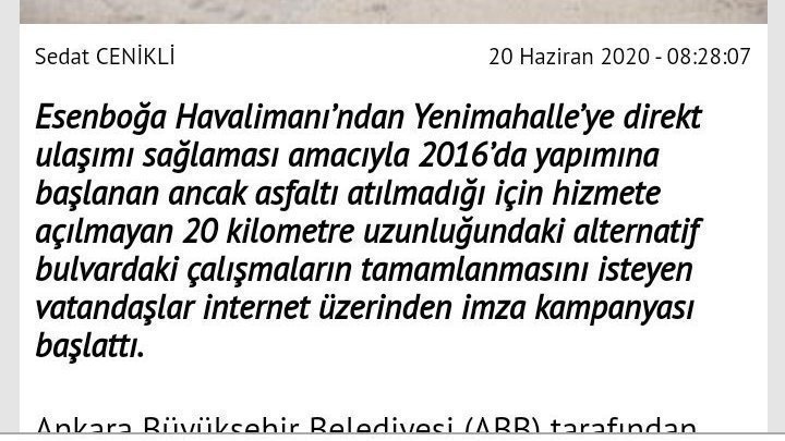 Petition updateKeçiören/Bağlum 50 metrelik protokol yolu asfaltının atılma işlemini karayolları yapsın...İmza kampanyamızla ilgili Hürriyet haberi.