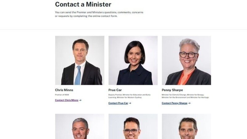 - Go to the NSW Government ‘Your Say’ weblink below for the Premier and relevant Ministers.