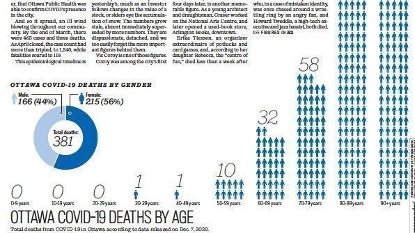 Mayor Watson is correct that the premier Doug Ford has no justification for the current lockdown in Ottawa. No matter what Ottawa residents do better, they are still penalized, so it is now time to oppose his orders and go about our regular lives. More than 90% of deaths in Ottawa are those over 70 yrs. old (see graphic). Stop killing our economy.