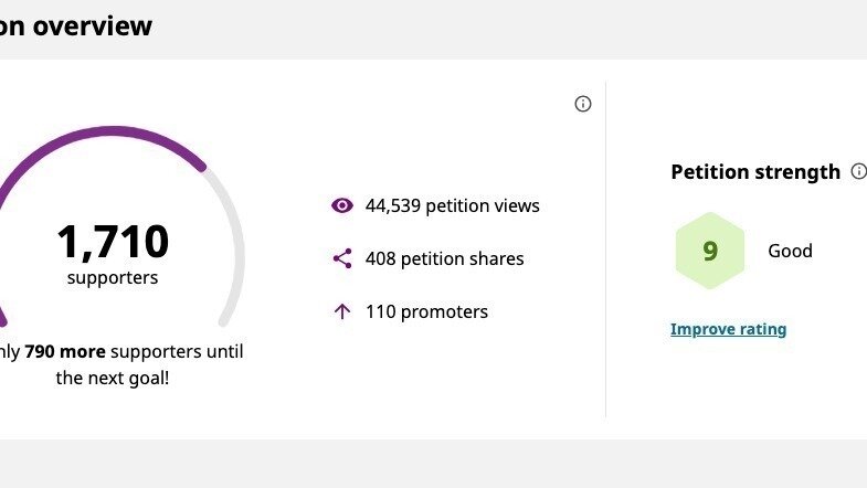 - More than 1,700 people have now signed our petition, which is terrific.