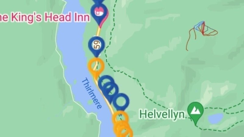 This screenshot is of the roads in question around Thirlmere. The different colour rings show the site of road traffic accidents involving vehicles, motorcycles or bicycles. Red is Fatal Injury, Orange is Severe Injury and Blue is Non severe injury. What the map shows very clearly is how dangerous this stretch of the A591 along the east side of Thirlmere is (with many recorded accidents) and how safe the U7003 along the west side is (with no recorded accidents).