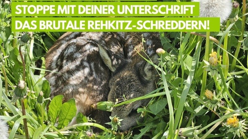 Erfahren Sie hier mehr und unterzeichnen Sie unsere Petition. Damit helfen Sie uns, das brutale Rehkitz-Schreddern zu stoppen.