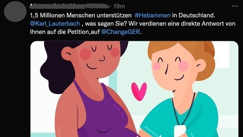 1,5 Millionen Menschen unterstützen #Hebammen in Deutschland. @Karl_Lauterbach , was sagen Sie? Wir verdienen eine direkte Antwort von Ihnen auf die Petition, auf @ChangeGER. https://www.change.org/Geburtshilfe