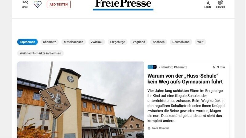 Am heutigen Tag, 12.12.2024, berichtet die Freie Presse erneut über die Huss-Schule und erwähnt auch kurz diese Petition hier.