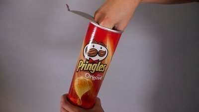 Pringles have cans that are tubular, and are, 9 times out of 10, too small for the average adult hand.