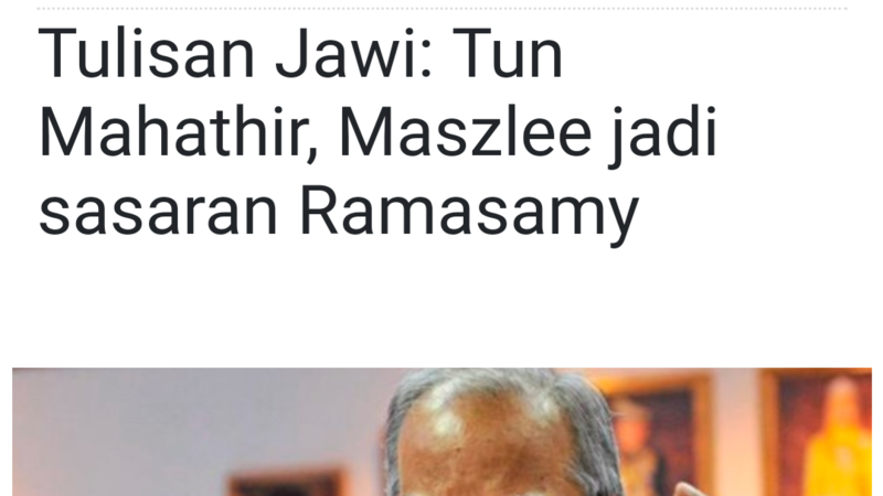 KUALA LUMPUR 6 Ogos - Perdana Menteri Tun Dr. Mahathir Mohamad dan Menteri Pendidikan Dr. Maszlee Malik menjadi sasaran Ahli Jawatankuasa Eksekutif Pusat (CEC) DAP, Prof. Dr. P. Ramasamy berhubung pelaksanaan pengenalan tulisan Jawi dalam buku teks di sekolah jenis kebangsaan.