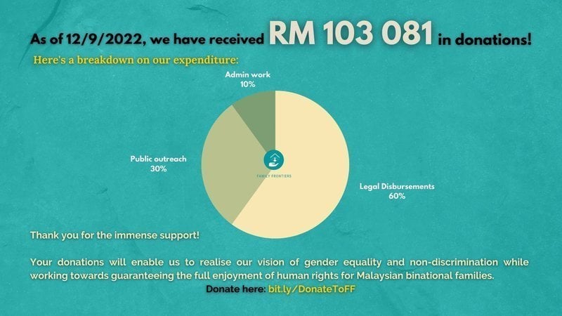 You play a crucial role in our campaign. We hope you can continue to support our efforts and spread the word! Your contribution brings us one step closer to our goal each day and ends the struggles of Malaysian women and their overseas-born children. You can continue to donate to Family Frontiers here: bit.ly/DonateToFF.