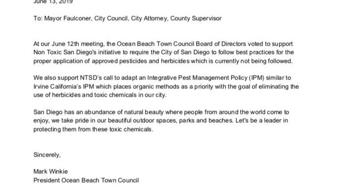 Petition updateCampaign for a Non Toxic San DiegoLetter of support from the Ocean Beach Town Council