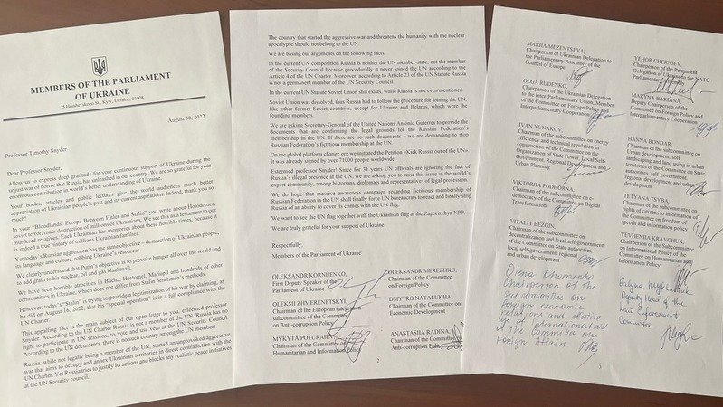 Also, based on the public information and clarification campaign, which is currently ongoing, it became possible, with the support of many committees of the Ukrainian Parliament, to send invitations to World-renowned scientists and leaders of public opinion to participate in the discussion of ways to achieve our goal and prospects for Ukraine and the entire World. In particular, nearest future we expect a discussion in Kyiv with Mr. Timothy Snyder, who, among others, was invited by a large group of Members of Parliamen of Ukraine (copy attached).