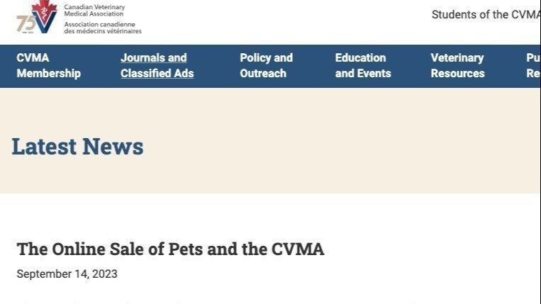 We have advised the party in question that, as with other animal welfare concerns, the CVMA will approach this issue through the lens of the veterinary profession. This includes a stepwise approach and full consultation with experts and presentation of the information to our leadership before any actions can be taken. We have also shared that the party is welcome to refer to any position statements regarding the sale of pets online that we may create in the future.