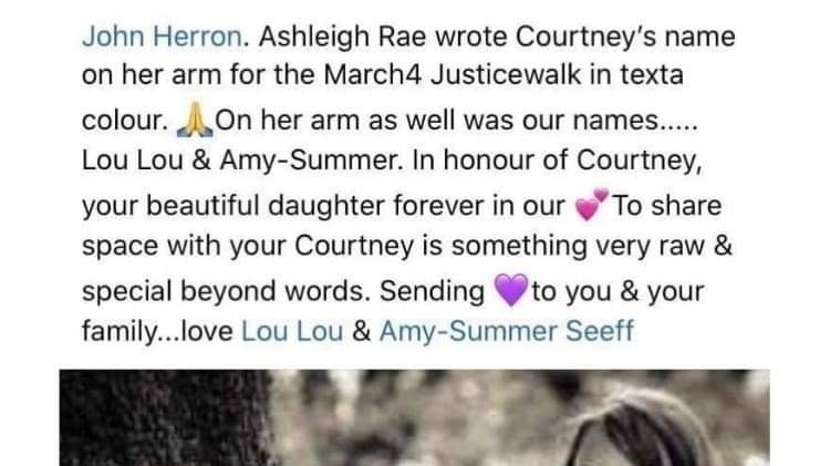 Firstly it is without a shadow of a doubt the most harrowing nightmare for John Herron & his family to experience losing his daughter Courtney.
