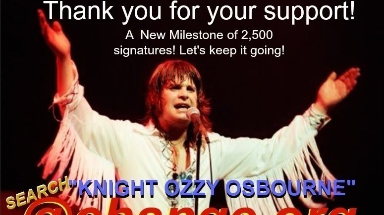 Petition updateKnight Mr John Michael 'Ozzy' Osbourne - TRIBUTE TO OZZY'S LEGACYNEW MILESTONE - 2,500 SIGNATURES!!