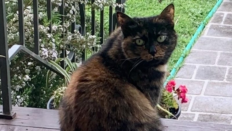 One day I was out for breakfast, coming back I pulled up the driveway, and was greeted by a beautiful cat. She followed me to the front door, so I patted her and she fell asleep on my front deck. A little later I went outside to mow the lawn, and tidy up the yard, and noticed the cat was still asleep on my porch. She woke up and followed me around the front yard, and backyard, for four hours. Everywhere I went, the cat followed. It got late in the day, getting dark, and I wasn’t sure what to do with this cat that was hanging around. We decided to let her in the house, as she was in no hurry to go, and we decided that tomorrow we would drop her off at the vet.