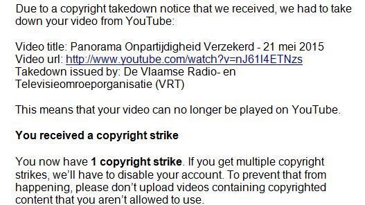 De VRT heeft na analyse door youtube 10 dagen de tijd om een dagvaarding uit te brengen.