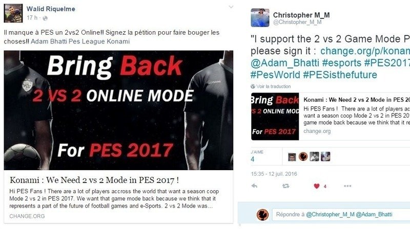 Petition updateBring Back 2 vs 2 Mode in PES 2017 !Konami is listening to us, PES champions support our cause !!!