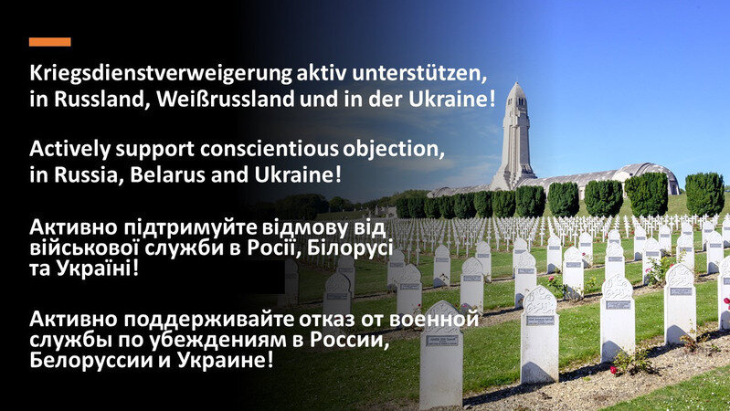 Vertiefende Informationen von Pazifist*innen und zur Situation der Kriegsdienstverweigerer in der Ukraine, Russland und Belarus findest Du hier.