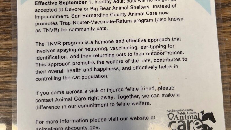 I am reaching out to express my deep concern regarding a troubling new policy implemented by George Harding, the Director of Animal Control for San Bernardino County, that directly affects the welfare of our feline friends. In a conversation I had with him today, he confirmed that the mBig Bear Animal Shelter will now refuse to accept any adult cat over the age of eight months. This decision is alarming and poses a serious threat to the well-being of countless cats in our community.