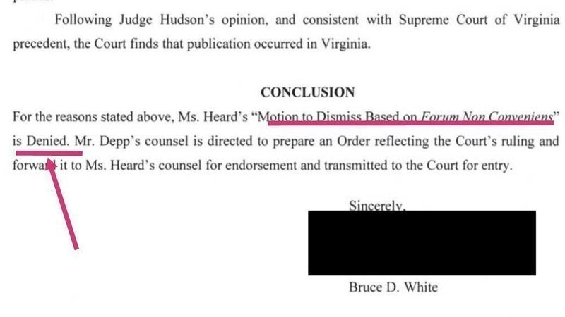 The judge agreed with Depp that because the Washington Post op-ed by Heard that is at the heart of the lawsuit was published in Virginia, the case should remain there.