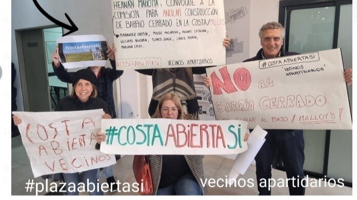 Entre las actividades que se vienen realizando, difusión del problema, suma de apoyo, pedimos la derogación del decreto del barrio cerrado, y tambien comenzar a tratar un plan de preservación integral de la costa.