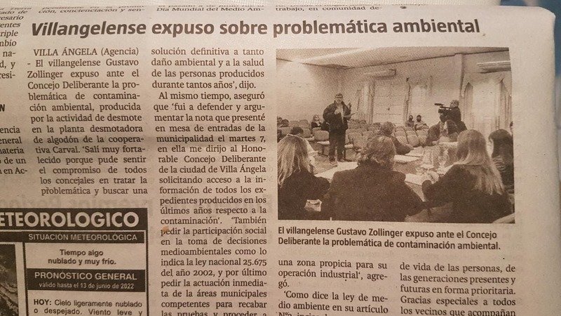 Actualización sobre la peticiónCARVAL Algodonera nos está contaminando y enfermandoPresentación ante el Consejo municipal de Villa Angela
