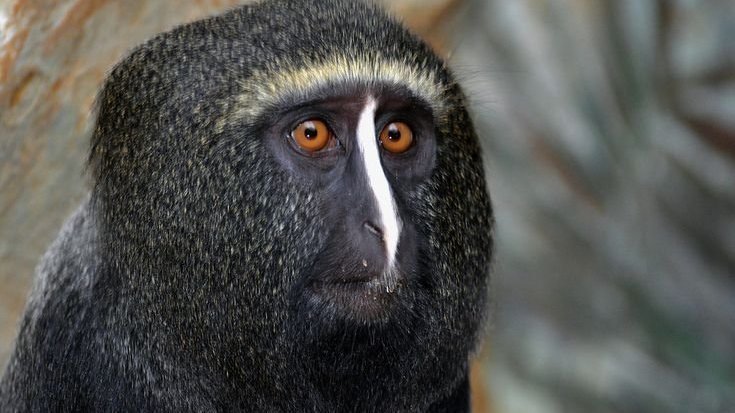 ~ Cercopithèque dryade: ce singe vit au Congo. Il est rare. Ce cercopithèque s'observe dans les endroits boisés à proximité du fleuve Congo. Il est menacé par la destruction de son habitat et par la chasse. Il est listé dans la catégorie espèce en danger critique d'extinction.