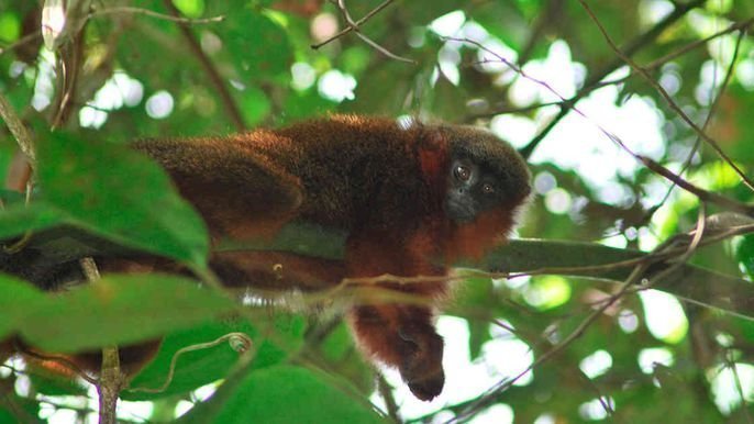 Son nom scientifique est callicebus caquetensis.Il vit uniquement en Colombie. Cette espèce a été trouvée récemment (en 2010) dans le district de Caqueta. Ce singe est listé en danger critique d'extinction par l'UICN. Entre 2000 et 2010,sa population a connu une baisse de 80%. Ils font parties des vingt-cinq espèces les plus en péril au monde. Ils sont menacés par l'agrandissement des exploitations agricoles de manière légale et illégale. Ils sont menacés par la pollution de l'environnement dû à l'utilisation des pesticides et des herbicides, ils sont empoisonnés par ces produits. Ils sont tués pour être consommer. En raison de la limitation des forêts,ces singes sont obligés de vivre en petit comité. En continuant de détruire et de dégrader le peu de forêt restante,la population de ce singe va dégringoler à nouveau de 80%. Ces singes n'ont pas été repérés dans des milieux protégés. Le gouvernement de cet état devrait prendre au sérieux la disparition des forêts pour assurer l'existence de ce primate. Ce spécimen a pour particularité de ronronner comme un chat.