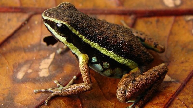 ~ Ameerega ignipedis : cette grenouille vit uniquement au Pérou dans la zone de Loreto. La population de ce spécimen est courante mais les activités humaines telles que les exploitations minières, pétrolières et du bois menacent ameerega ignipedis. Un projet de construction d'une route est envisagé entre le Brésil et le Pérou cela entraînerait des répercussions sur ce dendrobates car elle passerait au centre de l'habitat. Depuis 2015, ce batracien est présent dans une aire protégée : le parc national de la Sierra d'El Divisor. Il est listé dans la catégorie préoccupation mineure des espèces menacées.