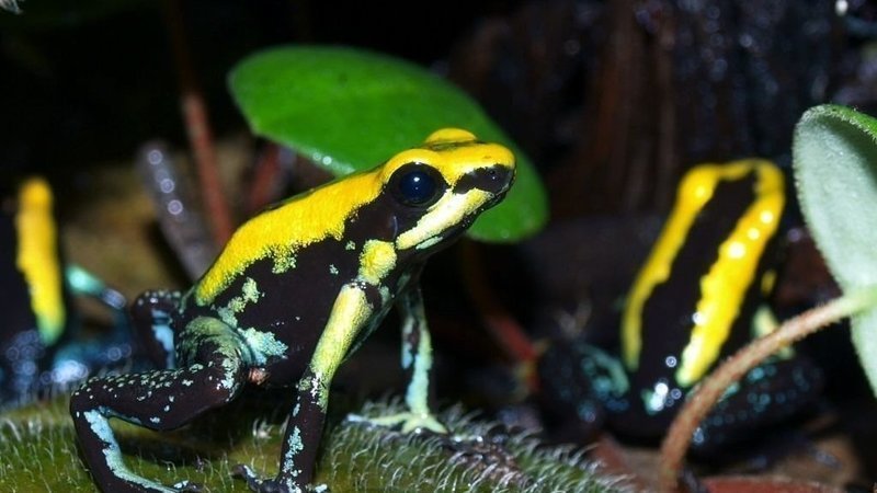 ~ Phyllobates aurotaenia ou grenouille venimeuse de Kokoe: ces dendrobates portent les noms de kokoï par les indiens Noanama et Embera ainsi que phyllobate à bande dorée par les français. Phyllobates aurotaenia a été analysé en 1913 par le naturaliste britannique George Albert Boulenger. Ils se trouvent dans les forêts tropicales humides des divisions de Choco et de Valle Del Cauca. Cette grenouille vit à des altitudes comprises entre 90 et 1000 m. Son habitat régresse de plus en plus en raison de l'expansion des activités humaines(agriculture intensive, pollution dû à l'utilisation des engrais). Elles sont victimes de trafic illégal. La grenouille venimeuse de Kokoe est également utilisée par les industries pharmaceutiques en Allemagne et au Canada pour étudier les alcaloïdes stéroïdiens qu'elles contiennent. Elles sont classées dans l'Annexe II de la CITES depuis 1987. L'UICN liste cette grenouille dans la catégorie quasi menacée des espèces en péril. Elles sont également chassées par les peuples indigènes pour pouvoir être utiliser le poison qu'elles renferment.