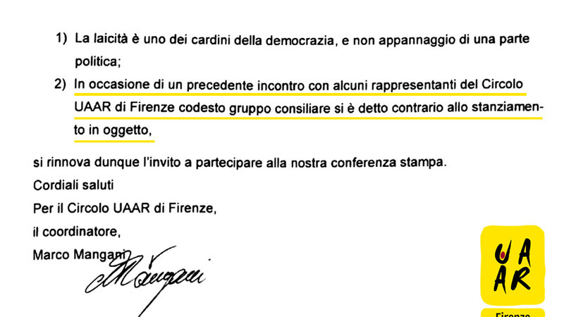 «Gentile Associazione UAAR,