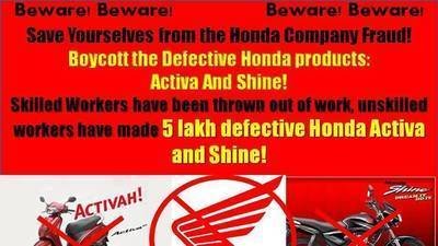 Boycott the defective Honda Products: Activa and Shine.