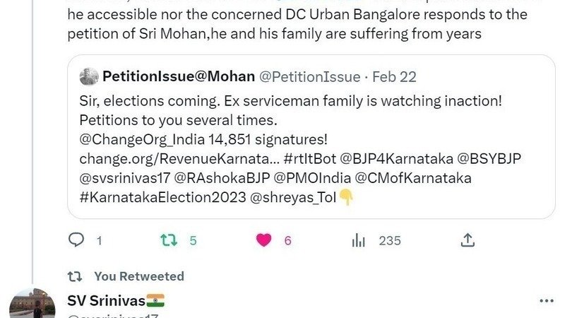 In the meantime, I also med a karayakarta of @BJP4Karnataka who happens to be a senior advocate. He reviewed the papers and was of the opinion that there weren't any legal hurdles to moving forward. Tweet from Sri SV Srinivas