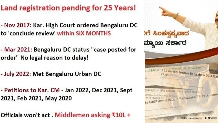 I continue to voice my views on corruption and apathy at the Revenue Department in Bengaluru Urban DC's office because of which my file has been pending for years. All this despite an order from the honorable Karnataka High Court and several of my petitions to the Deputy Commissioner and the Chief Minister.