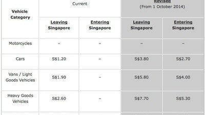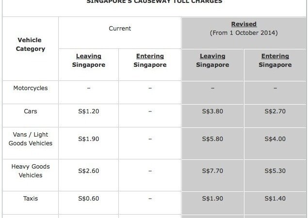 Singapore LTA (Land Transport Authority) has decided to raise its tolls for all types of vehicles (except Motorcycles) travelling in and out of Woodlands Checkpoint starting from 1st OCT. We now have to pay $13 in toll for a round trip to malaysia and back.